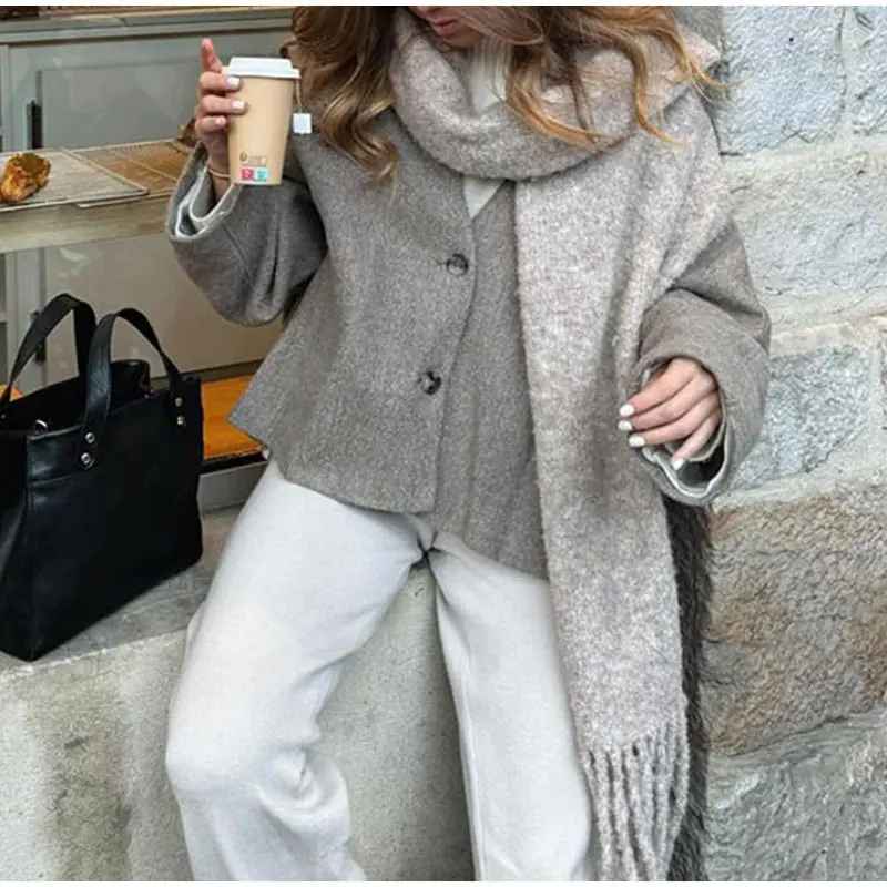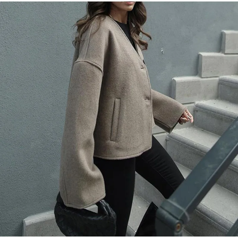 Fashion Loose Single Breasted Long Sleeve Pockets Chic Lady Commuter Coats Women Vintage Blends Fit Blazer Coat Female Jackets